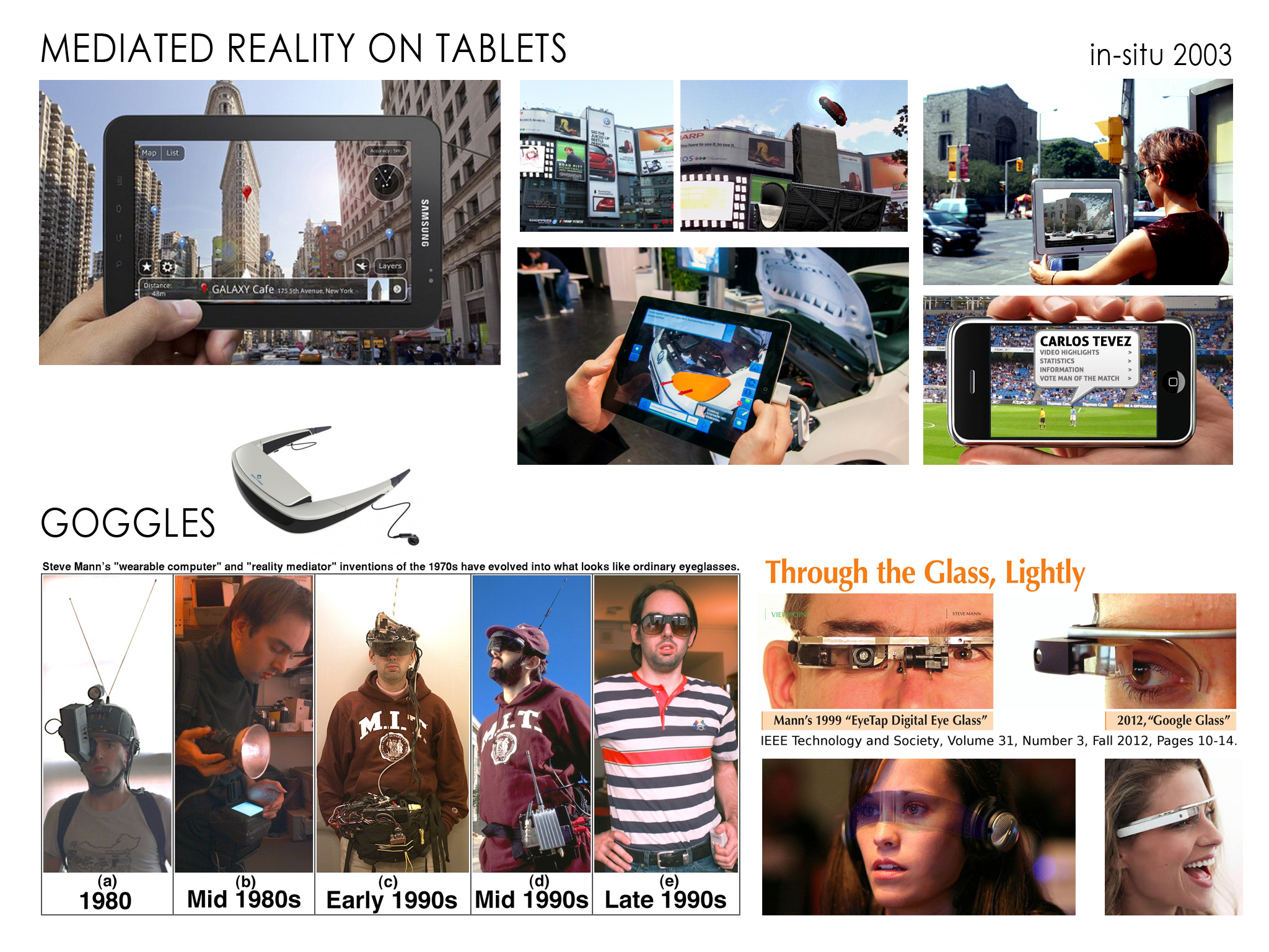 Goggles will most likely be the next wave of consumer products. Google Glass is just the tip of the iceburg and really only handles information at the moment. Full visual overlays will provide for much more artistic and entertainment creation. Cyborg pioneer, Steve Mann, is pictured above. Dan Zen grew up with Steve during the formative years and has many sketches and prototypes of related technology including "Digital Glass" back in 2000. The Trippy app by Dan Zen is a sign of more recreational usage as it kaleidoscopes, inverts and posterizes your view, provides blend modes and op art overlays, etc. There are many more artistic uses of overlays for instance, having animated companions - perhaps guides, perhaps friends.